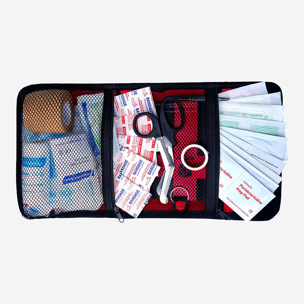 ROCK 洛克便捷急救包是一款便于携带的折叠急救应急包,内含实用且珍贵的医院级医疗用品、各种绷带、碘垫、燃烧凝胶、创伤剪刀、纱布垫等。可以加金属扣,挂在包上或者其他随身携带的装备上; 尺寸刚好合适,适合休旅车、ATV、游艇、船、吉普车、自行车或摩托车的任何地方。